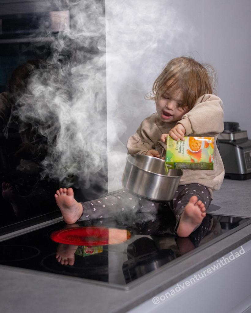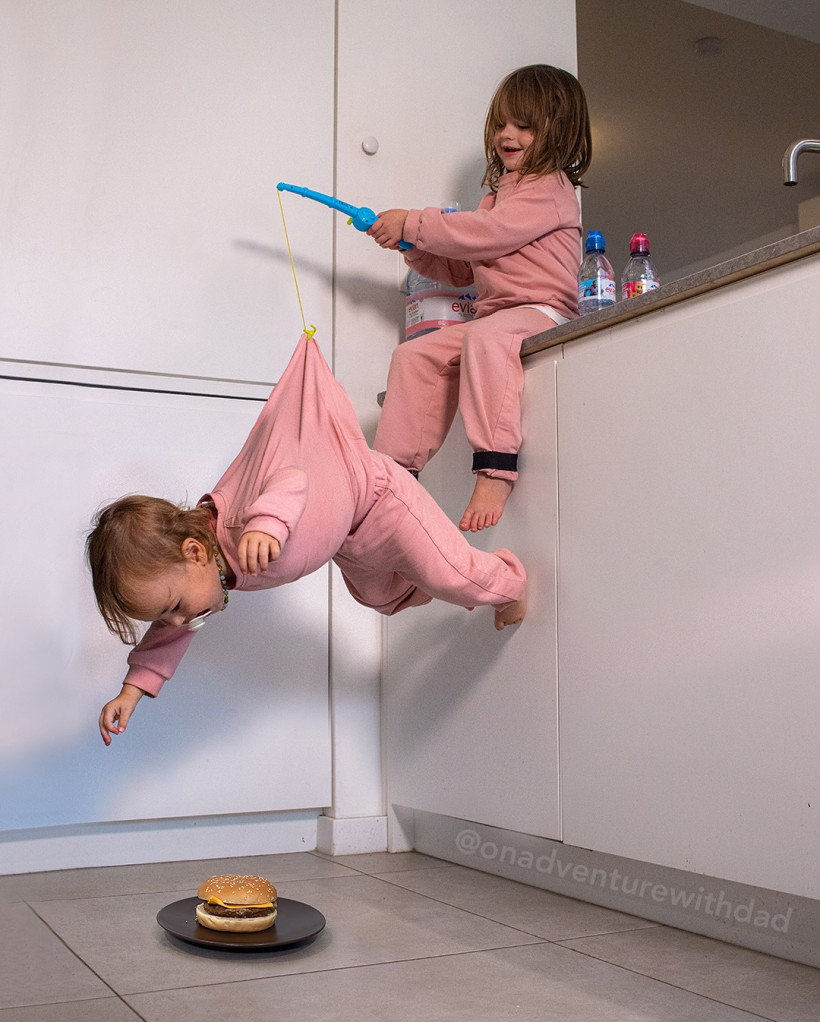 Кенни опубликовал свои странные и немного пугающие фотоколлажи с дочерью в рискованных и почти невозможных ситуациях в соцсетях и они принесли ему небезызвестную популярность.